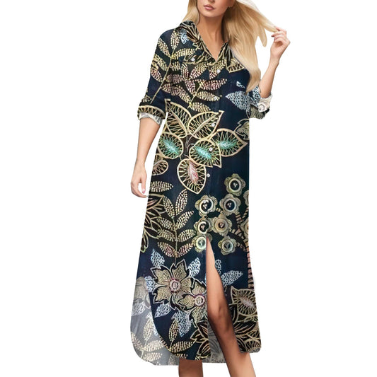 Summer Fashion Elegant Shirt Dress Women 2023 Print Long Sleeve Button Ladies Office Holiday Casual Clothing Female Maxi Dress