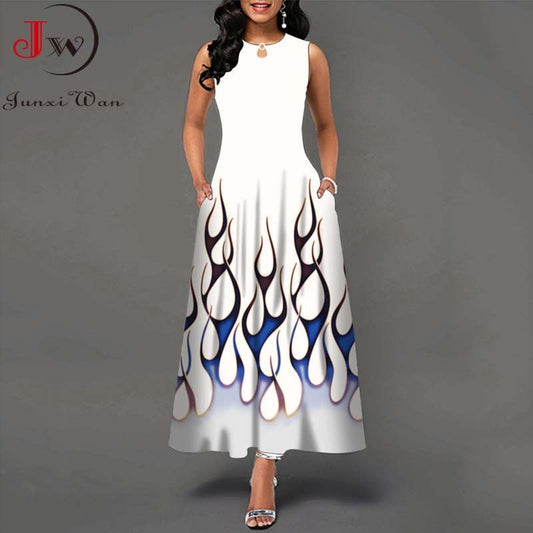 Summer Women Floral Printed Long Dresses Casual Sleeveless Beach Holiday Boho Maxi Dress Vestidos