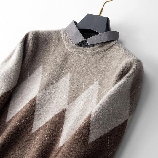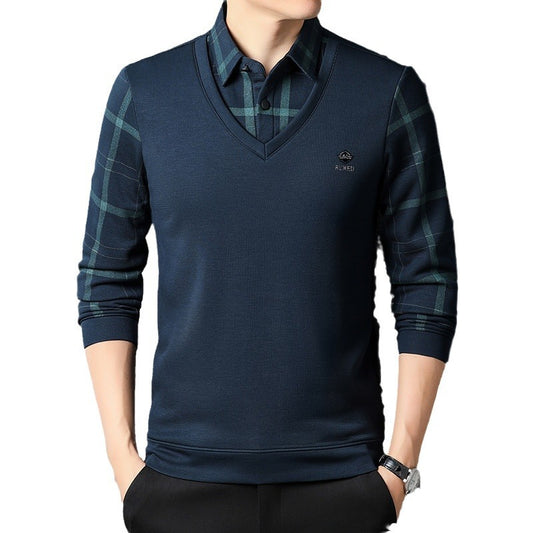 Camisa de dos piezas de imitación de visón con bloques de diamantes para hombre