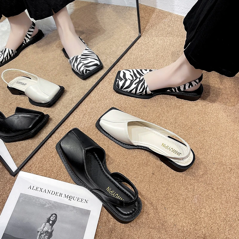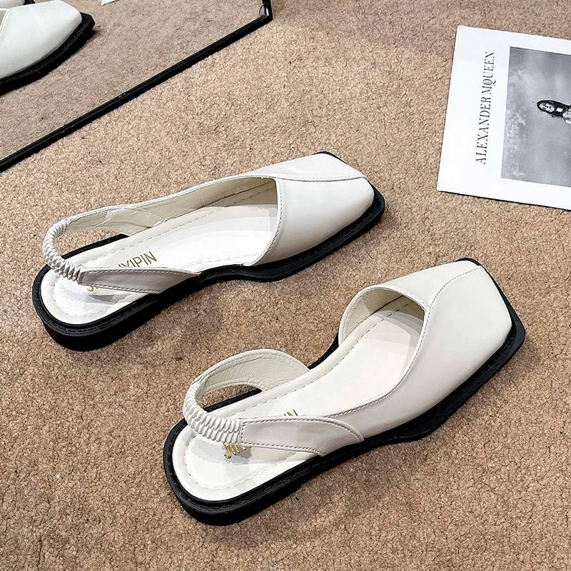 2023 Nuevas sandalias elásticas plisadas con punta cuadrada de verano Zapatillas de moda para mujer Sandalias con punta cóncava para mujer Sandalias de diseñador para mujer
