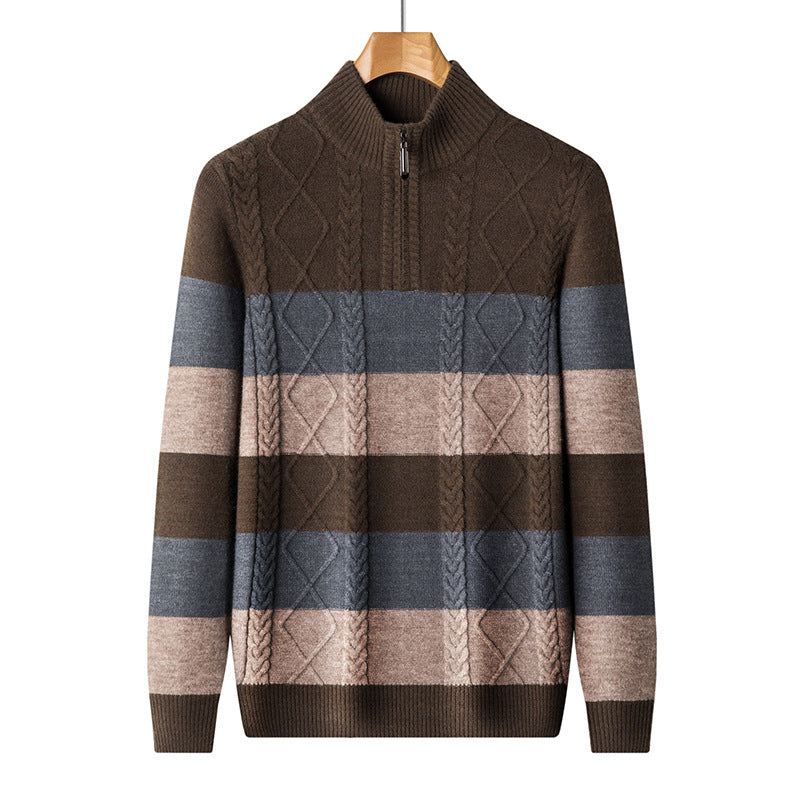 Suéter grueso y cálido con media cremallera en los bajos para hombre