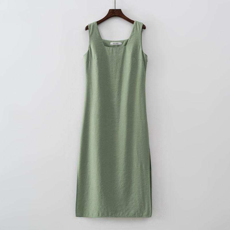 Nuevo diseño 2023, vestido de verano para mujer, liso, sin mangas, vestido de moda con abertura en la playa