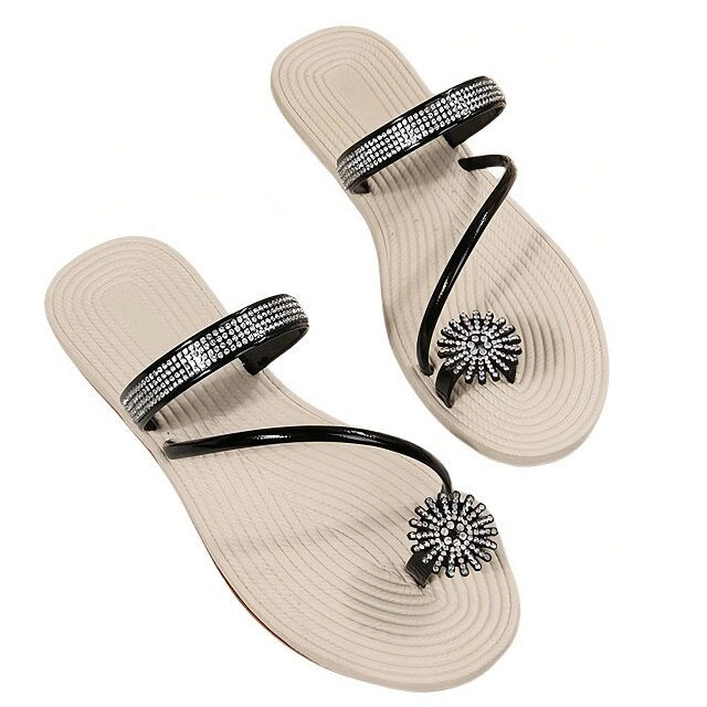 Zapatillas de playa de verano para mujer, sandalias elásticas con punta plana y tiras, sandalias casuales, zapatillas de playa, zapatos para mujer