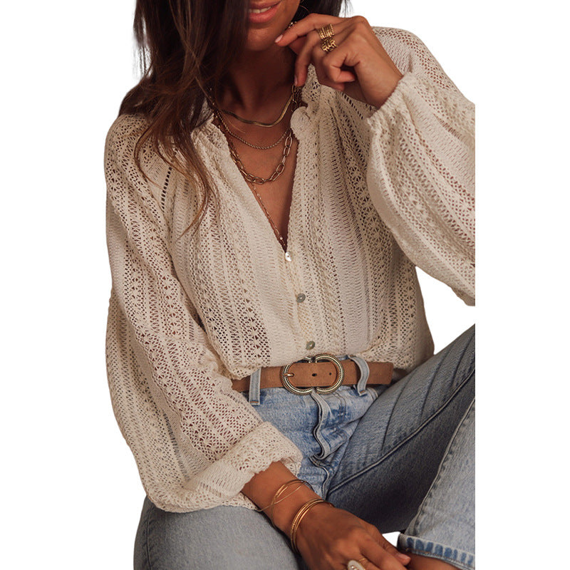 All-matching Solid Color V-neck Long Sleeve Top Women