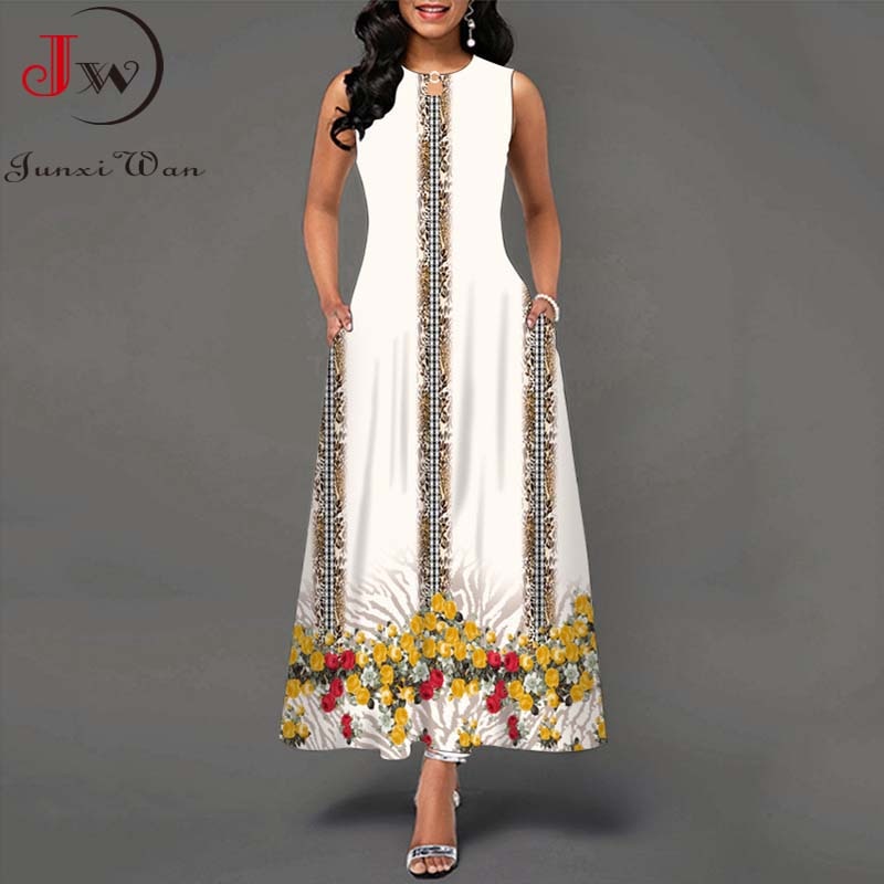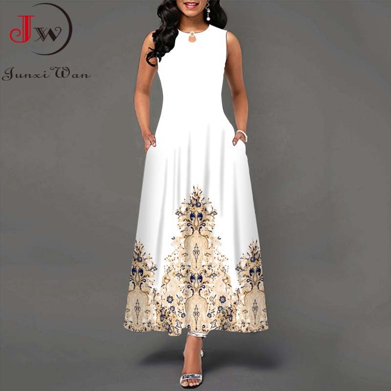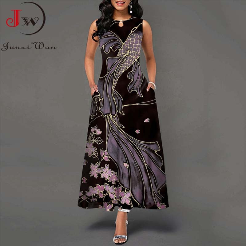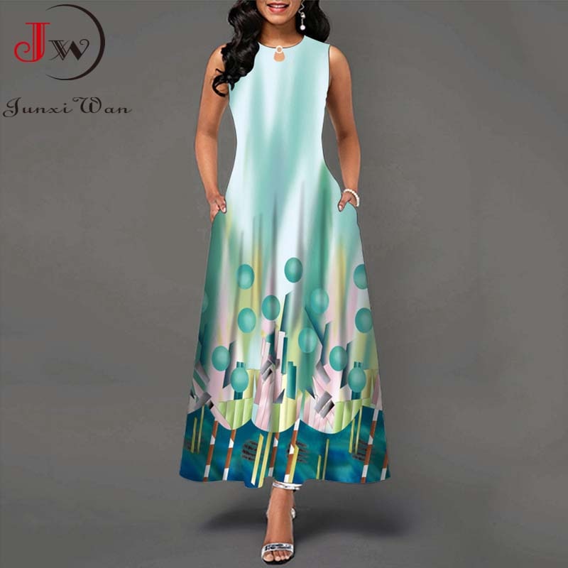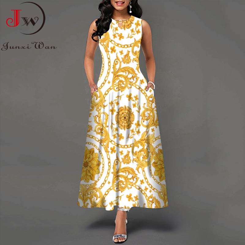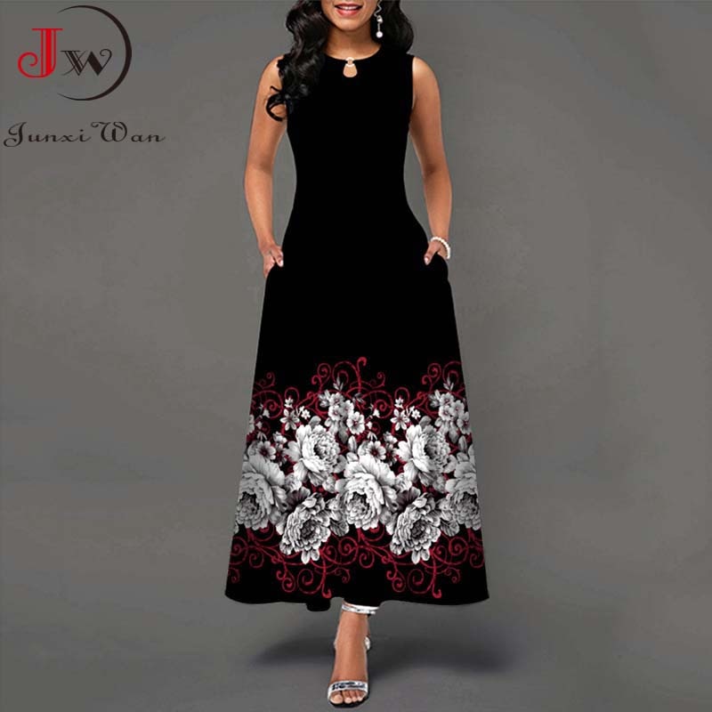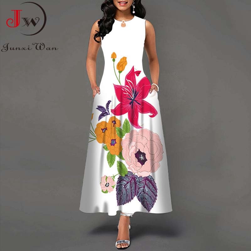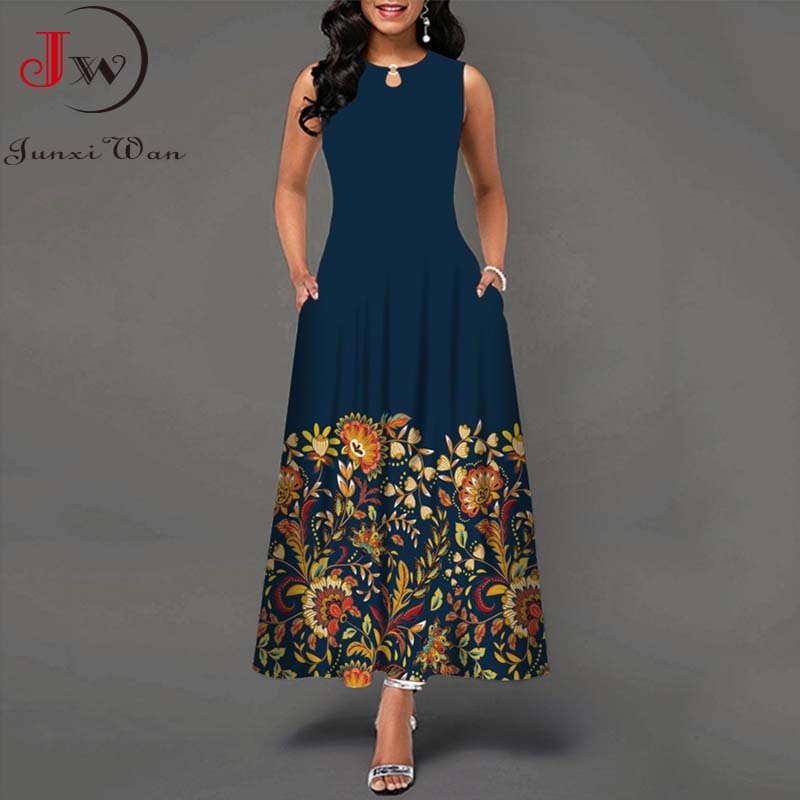 Summer Women Floral Printed Long Dresses Casual Sleeveless Beach Holiday Boho Maxi Dress Vestidos