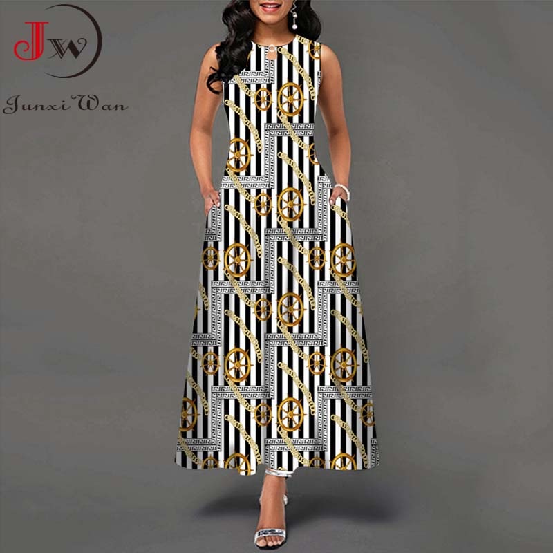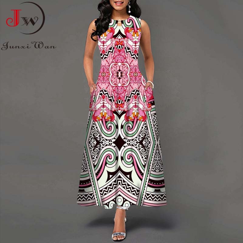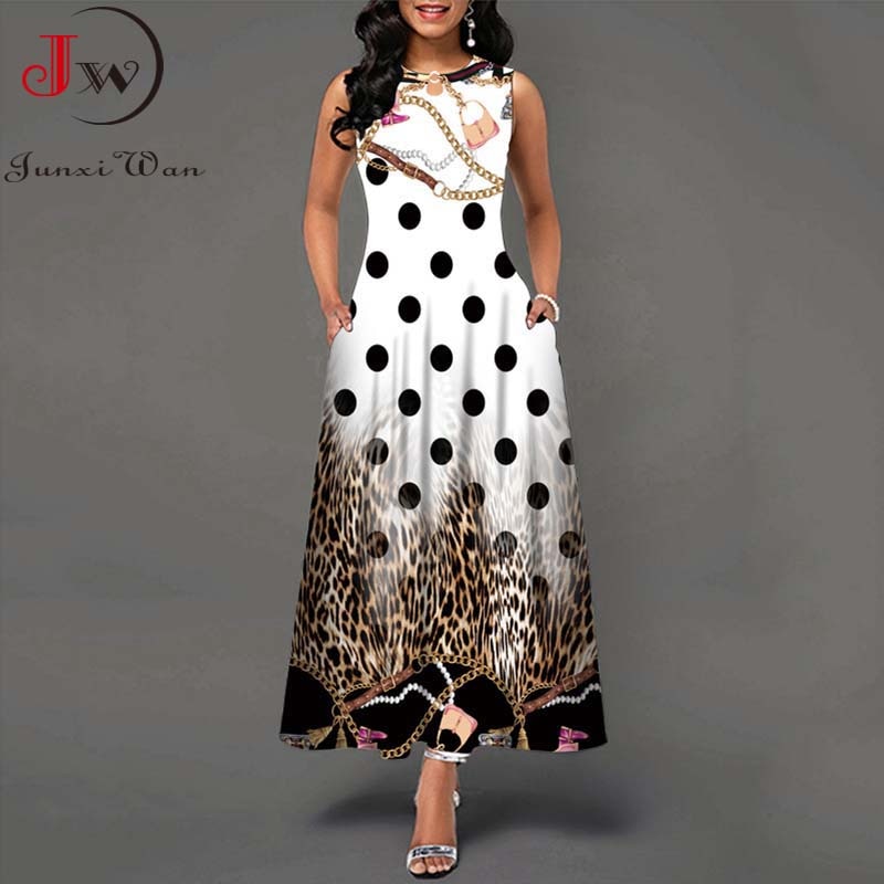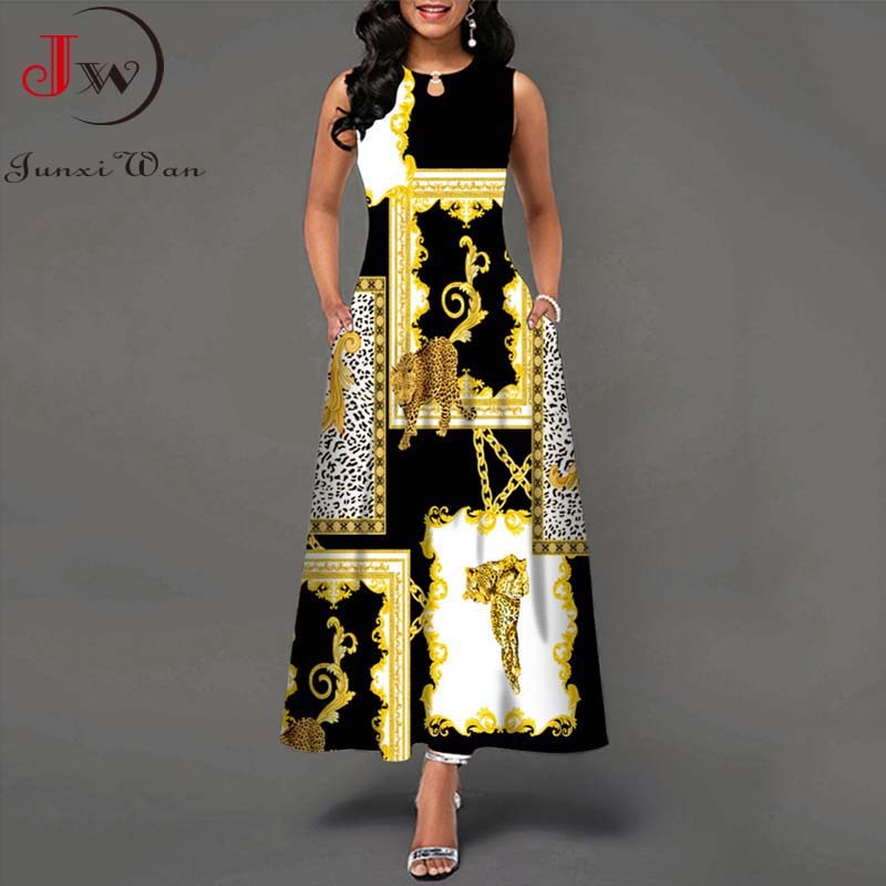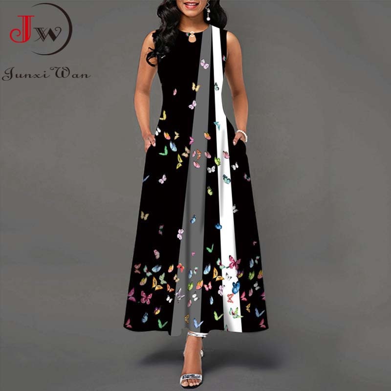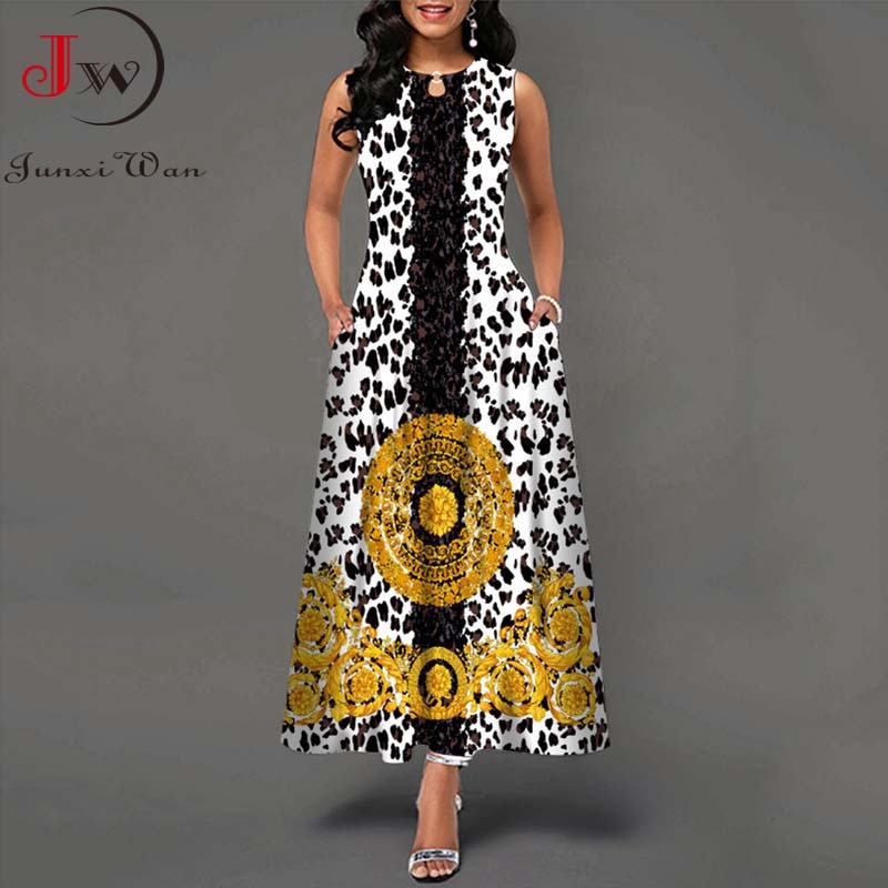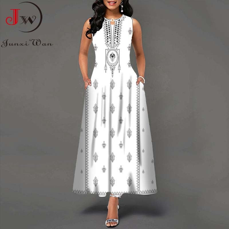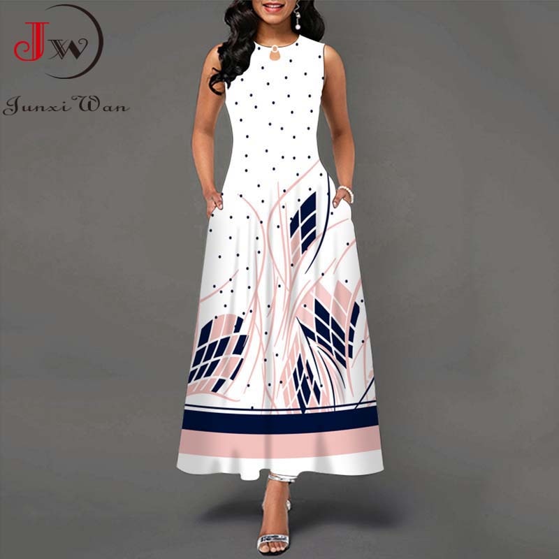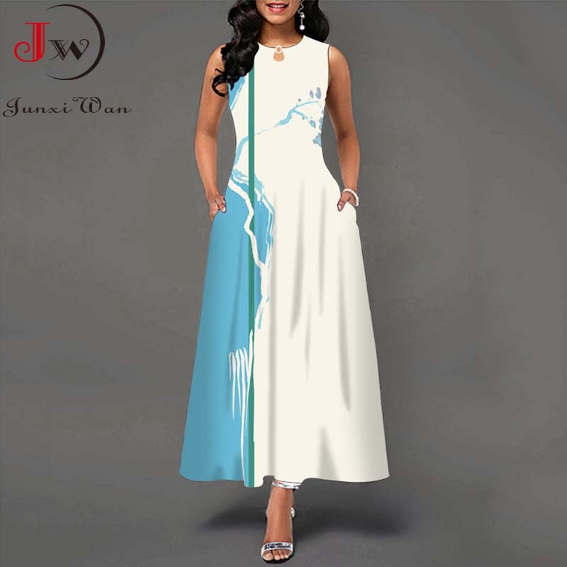 Summer Women Floral Printed Long Dresses Casual Sleeveless Beach Holiday Boho Maxi Dress Vestidos