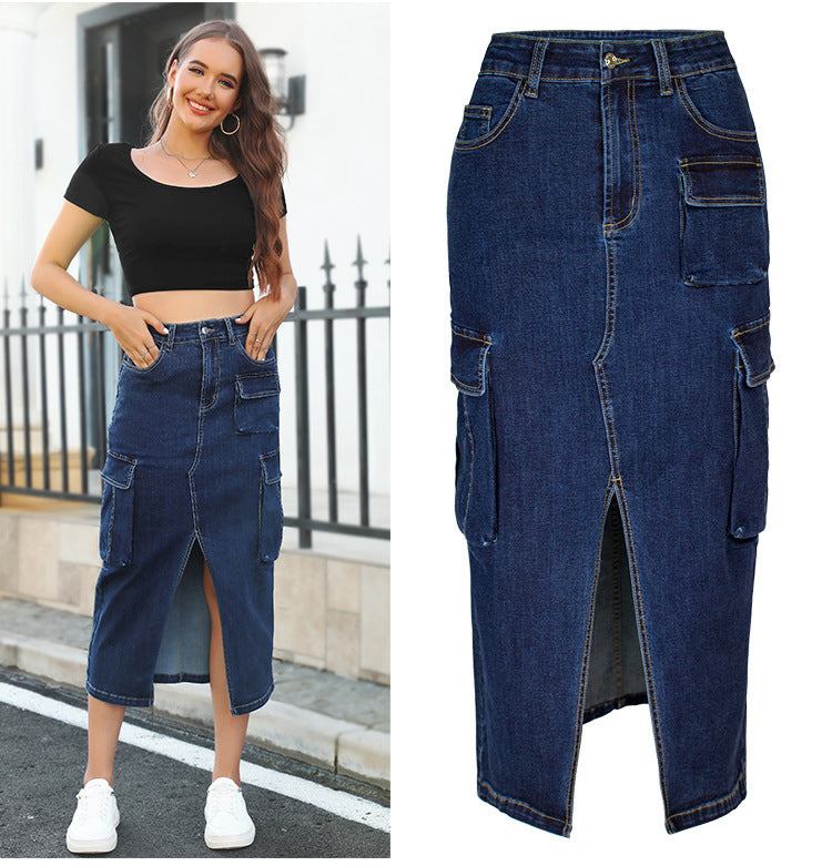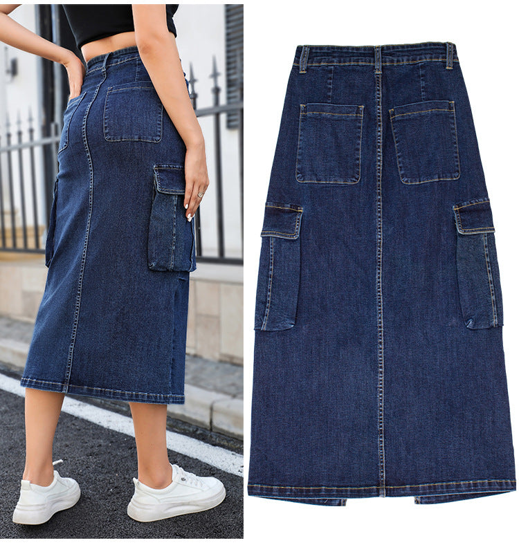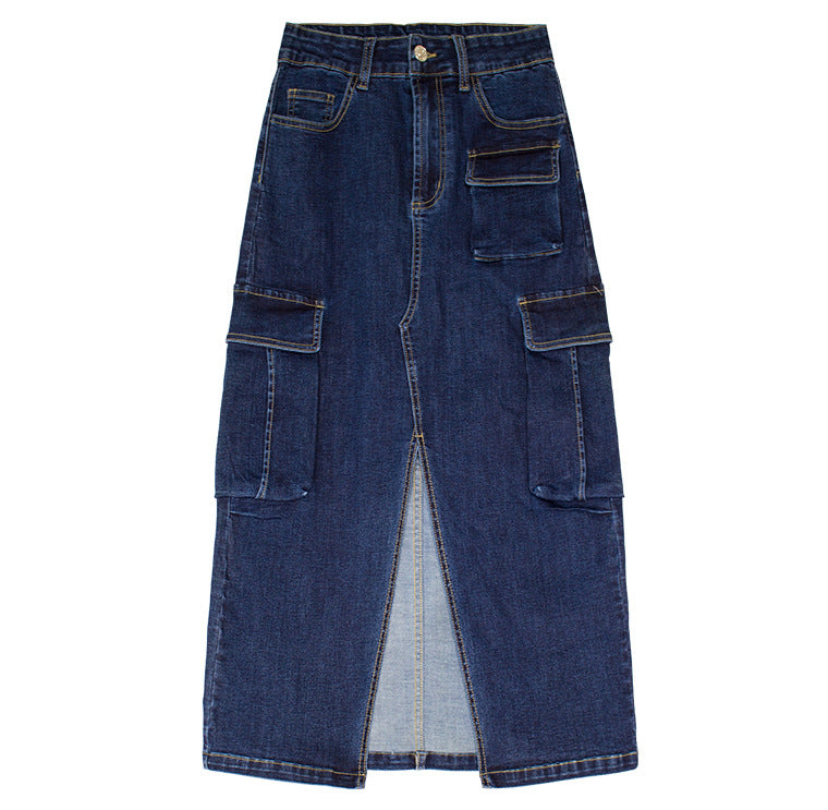 Tooling Style Multi-pocket High Waist Slimming Slim Fit Slit Hip Skirt